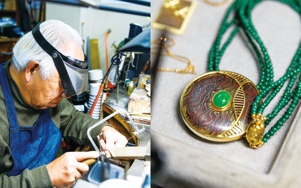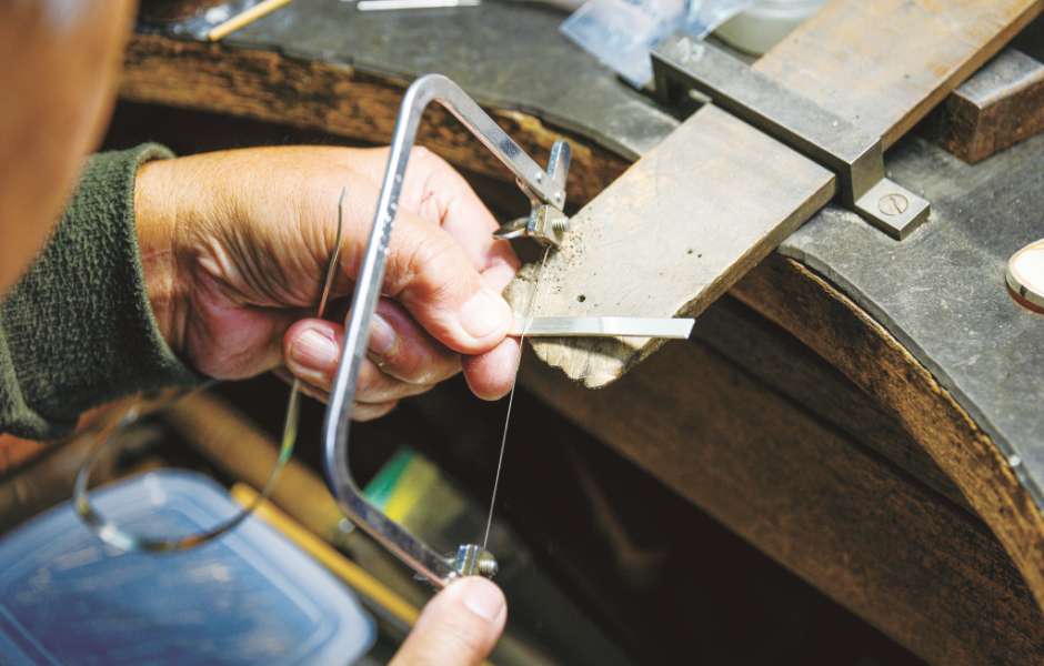 子どもの頃から、近所の駄菓子屋で買った折りたたみナイフで竹とんぼを作るなど、道具を使ったものづくりが好きでした。高校卒業後すぐにこの道を選び、約60年間、貴金属装身具工として携わっています。扱う金属は金やプラチナ、銀など多岐にわたり、ペンダントや指輪など日常使いできるものから、コンテスト用の作品まで幅広く制作しています。技術は一生をかけて追求するものです。より良いものを作るために試行錯誤し、研究することが本当に好きなので、この仕事に苦しさや難しさを感じたことはありません。作品を見た方に喜んでいただけるものを作り続けます。