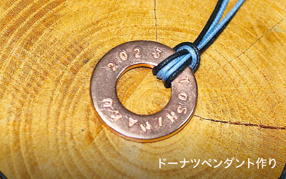金工の技術を使い、銅でドーナツ型のペンダントを作る