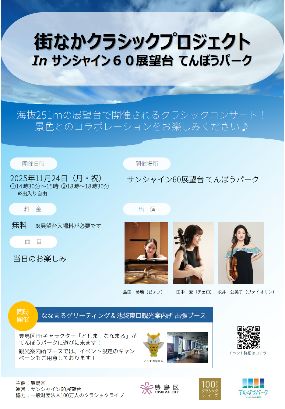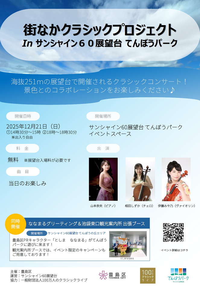 ーあおのふるまいー豊島区ストリートピアノを設置しているサンシャイン60展望台 てんぼうパークにて、特別公演を行います。