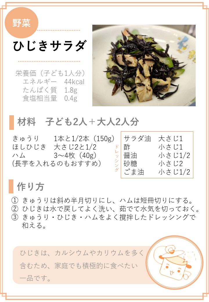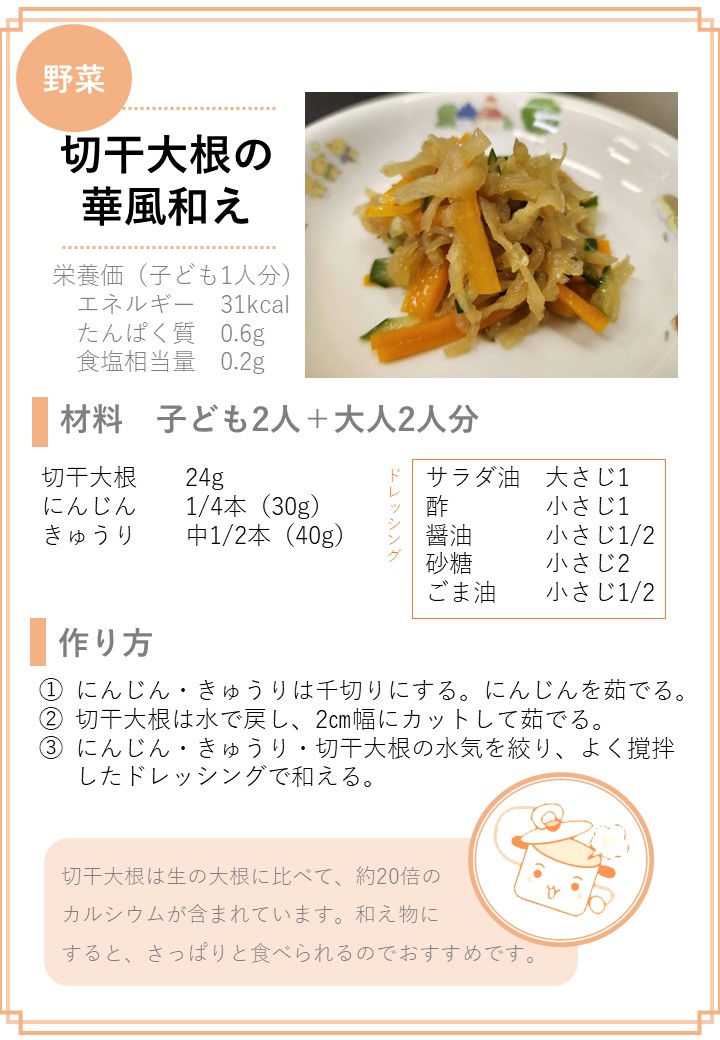 ホーム > 子育て・教育 > 保育 > 保育園の在園・退園に関すること > 保育園給食に関すること > 保育園給食レシピ集 > 野菜料理