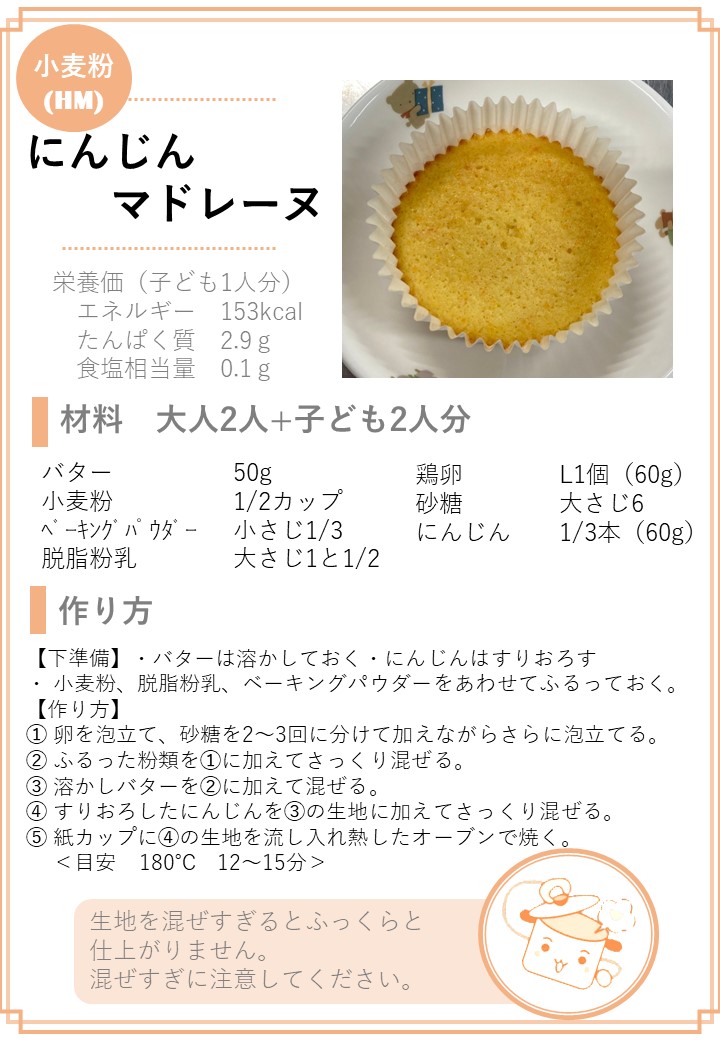 ホーム > 子育て・教育 > 保育 > 保育園の在園・退園に関すること > 保育園給食に関すること > 保育園給食レシピ集 > 小麦粉(HM)