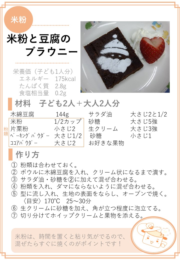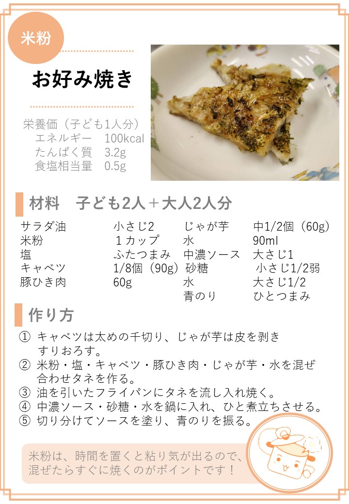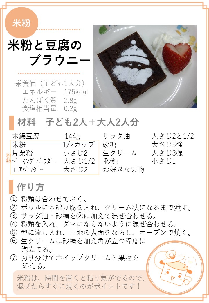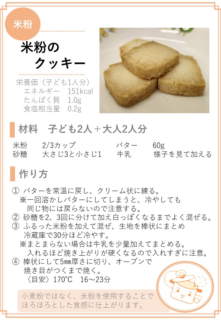 ホーム > 子育て・教育 > 保育 > 保育園の在園・退園に関すること > 保育園給食に関すること > 保育園給食レシピ集 > 米粉
