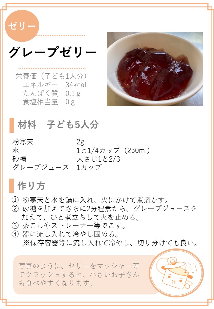 ホーム > 子育て・教育 > 保育 > 保育園の在園・退園に関すること > 保育園給食に関すること > 保育園給食レシピ集 > ゼリー