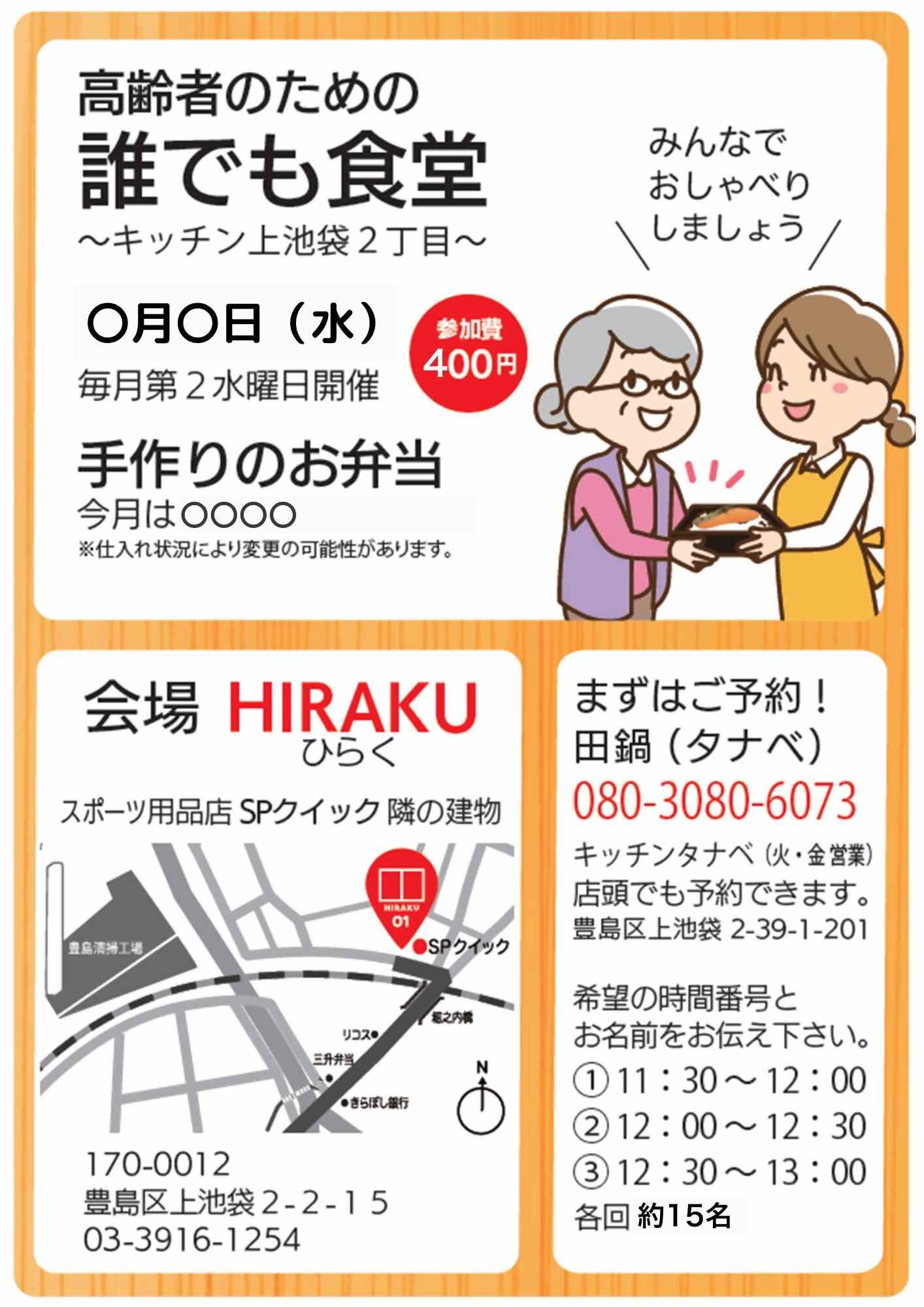| 食堂名 | 会場 | 開催日 | 担当(連絡先) | |