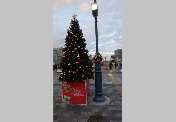 2025年11月28日から2025年12月29日 目白駅前ひろばクリスマスツリー設置